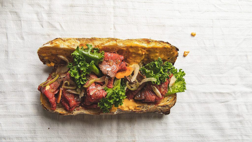 כך תכינו רוסטביף הירו – כריך רוסטביף, איולי חרדל ופפרונצ'ינו עם חמוצים שיקגו סטייל: קולים לחמניית ג'בטה או בגט כ־4 דקות בתנור שחומם מראש ל־200 מעלות. ממלאים בפרוסות דקות של רוסטביף ומזלפים איולי חרדל ופפרונצ'ינו. מפזרים חופן לבבות חסה וחמוצים חתוכים, מזלפים שמן זית ומגישים.